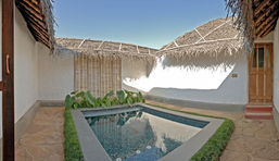 The thatched cottages offer a sumptuous living space with a large bed, dreamy bathrooms, beautiful wooden interiors and a personal outdoor shallow water-jet pool in the courtyard. The huts are a gorgeous blend of traditional crafts and modern luxury